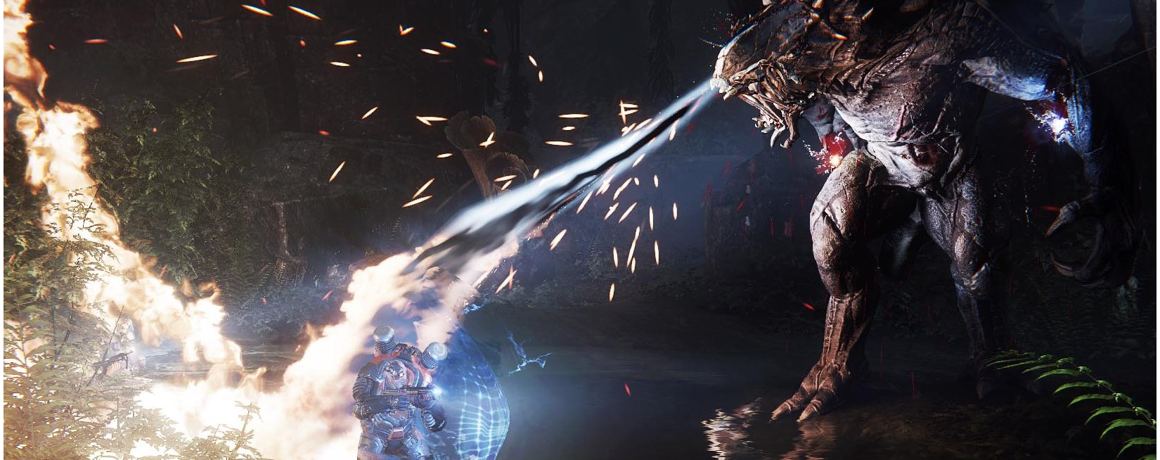 Evolve – новая игра от создателей Left 4 Dead – многопользовательский шутер, где четверым охотникам предстоит сразиться с крайне свирепым монстром, управляемым игроком-соперником.