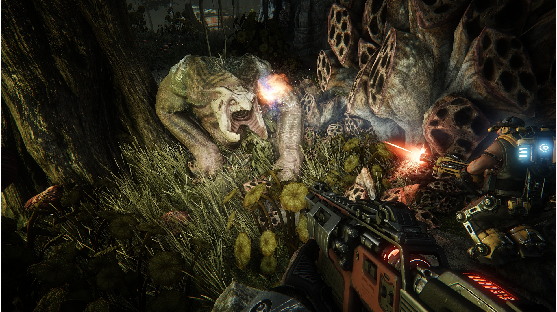 • Опасное задание, опасный монстр, опасная планета - в джунглях водятся не только охотник и зверь, мир EVOLVE черезвычайно опасен - другие животные и некоторые виды растений также не против вами полакомиться.