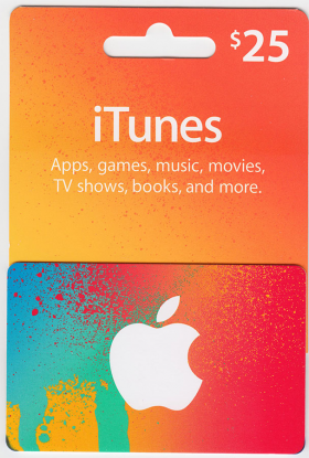 Код iTunes Gift Card предназначен для пополнения американского аккаунта iTunes и AppStore. Купив данный товар Вы получите 16-значный код подарочный карты (карты оплаты) iTunes Gift Card на 25$ (25 долларов), с помощью которой можно пополнить свой USA-аккаунт на iTunes Store и AppStore.