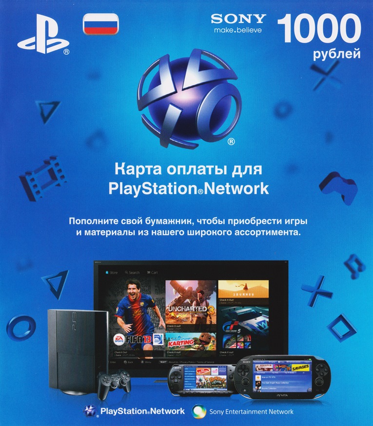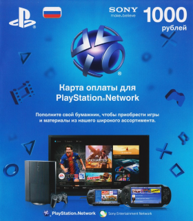 Kарта оплаты, позволяющая пополнить баланс для русской версии аккаунта Playstation Network (PlayStation RU Store) на 1000 рублей.