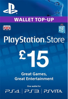 Kарта оплаты, позволяющая пополнить баланс для аккаунта Playstation Network (PlayStation UK Store) на 15 фунтов стерлингов.