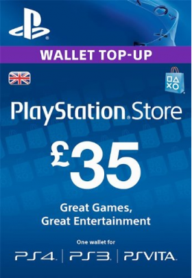 Kарта оплаты, позволяющая пополнить баланс для аккаунта Playstation Network (PlayStation UK Store) на 35 фунтов стерлингов.