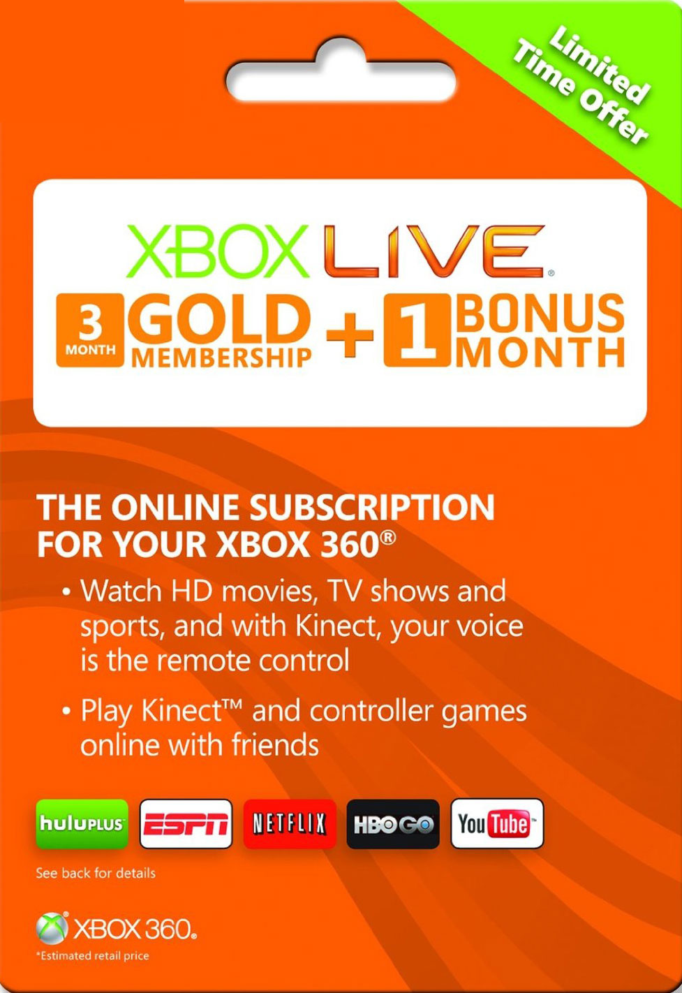 Предоплаченная карта, позволяющая продлить подписку Xbox Live Gold сроком на 4 месяца (3 + 1 бонусный).